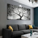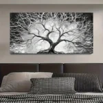 Featuring a striking tree rendered in dramatic monochrome tones, this artwork highlights the natural beauty and intricate detail of the branches against a clean, contrasting background.