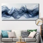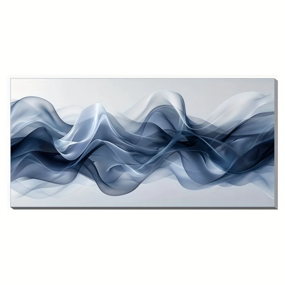 Featuring flowing chiffon-like textures in soft blue and white tones, this artwork creates a light, sophisticated look inspired by classic Art Deco design.